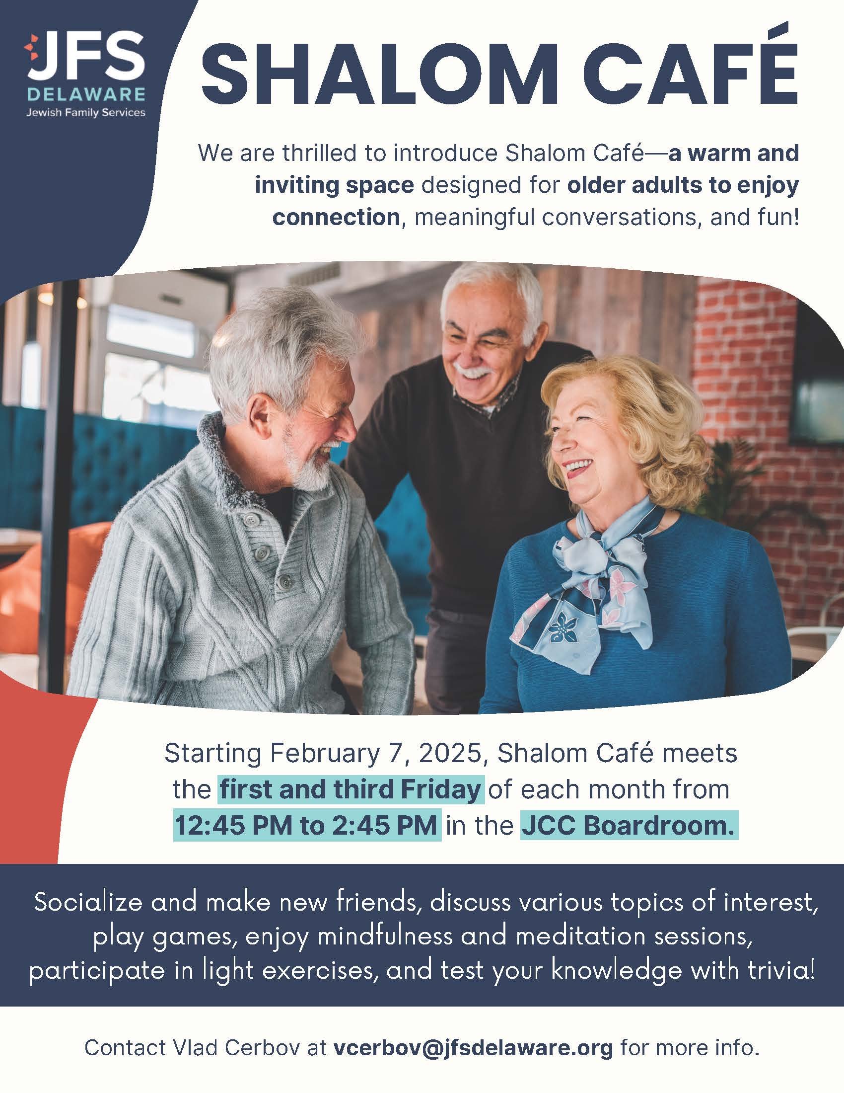 Join us at Shalom Café the first Friday of each month, where every visit is an opportunity to laugh, learn, and connect with others.